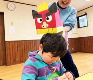 1月は福笑いをしたり、ちょっとした獅子舞体験をしたりと季節の行事を楽しみました。