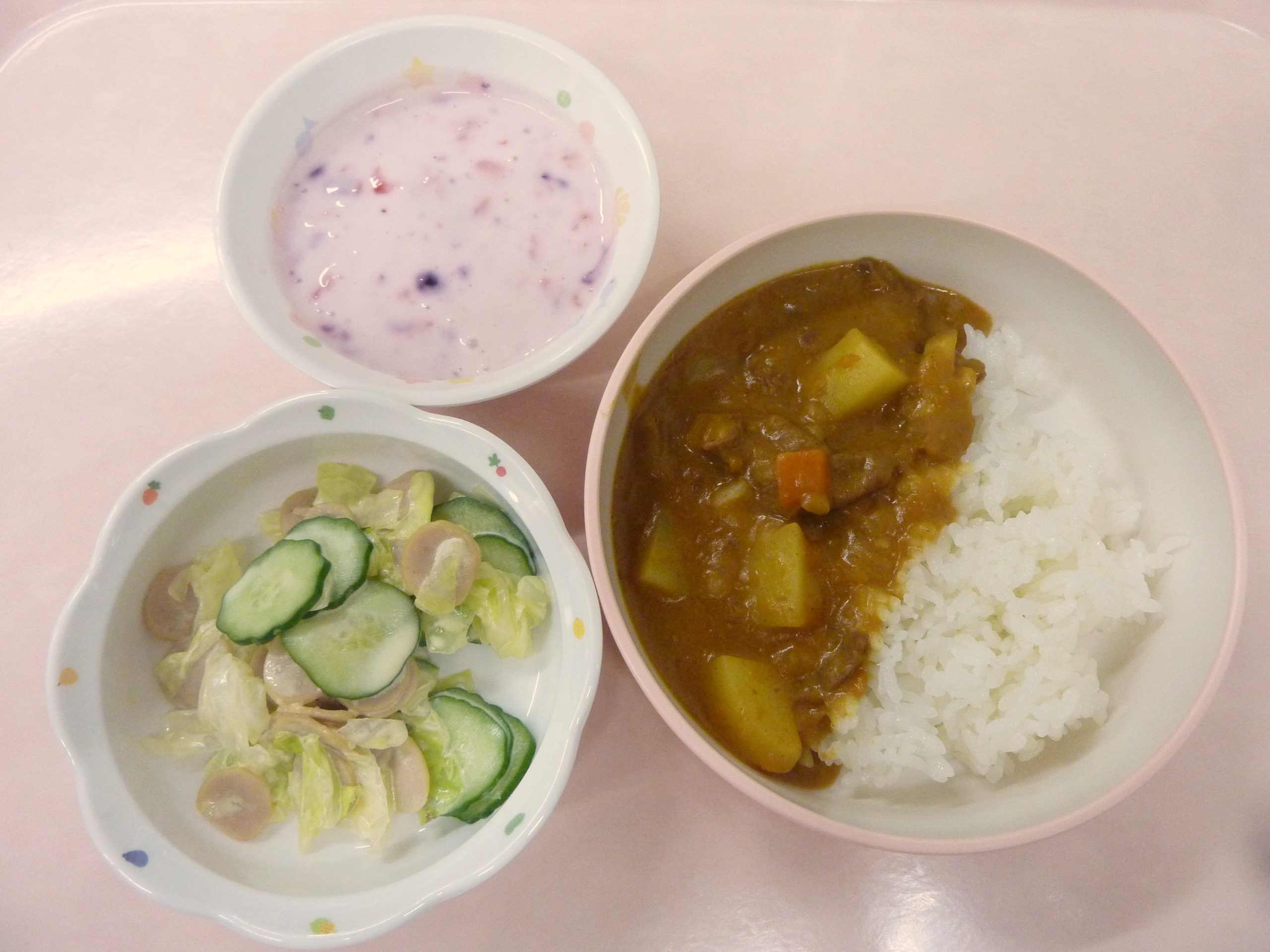 カレーライス・野菜サラダ・フルーツヨーグルト