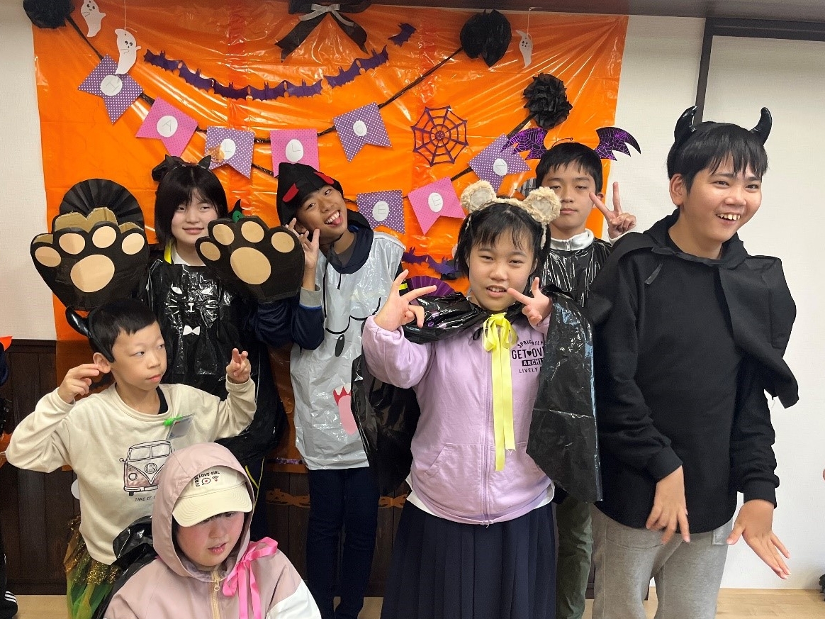 フォトスペースを作ってみんなで仮装して写真撮影を行いました🎃