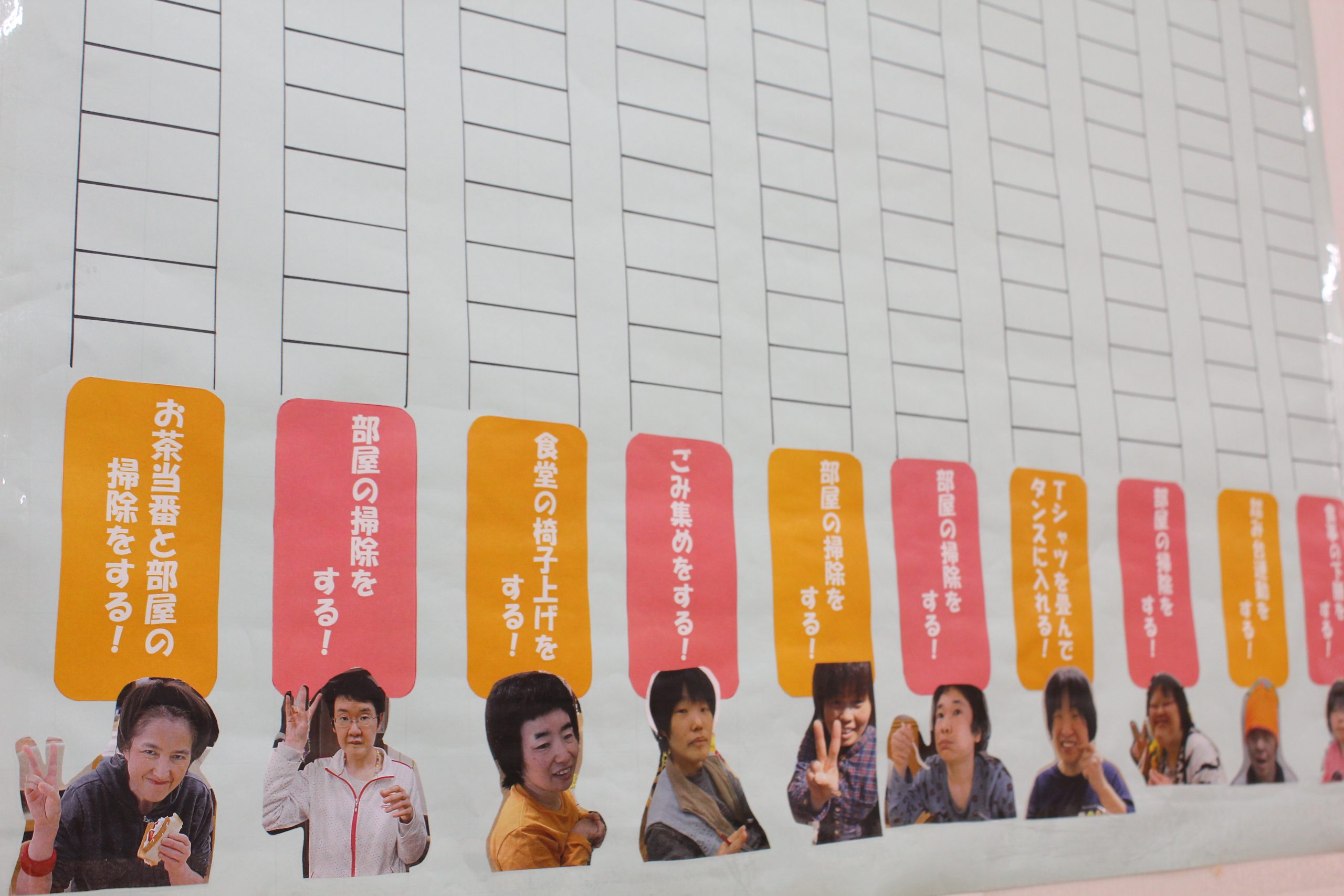 利用者の皆さんは毎日、掃除に洗濯、食事の配膳当番などに取り組んでいます。