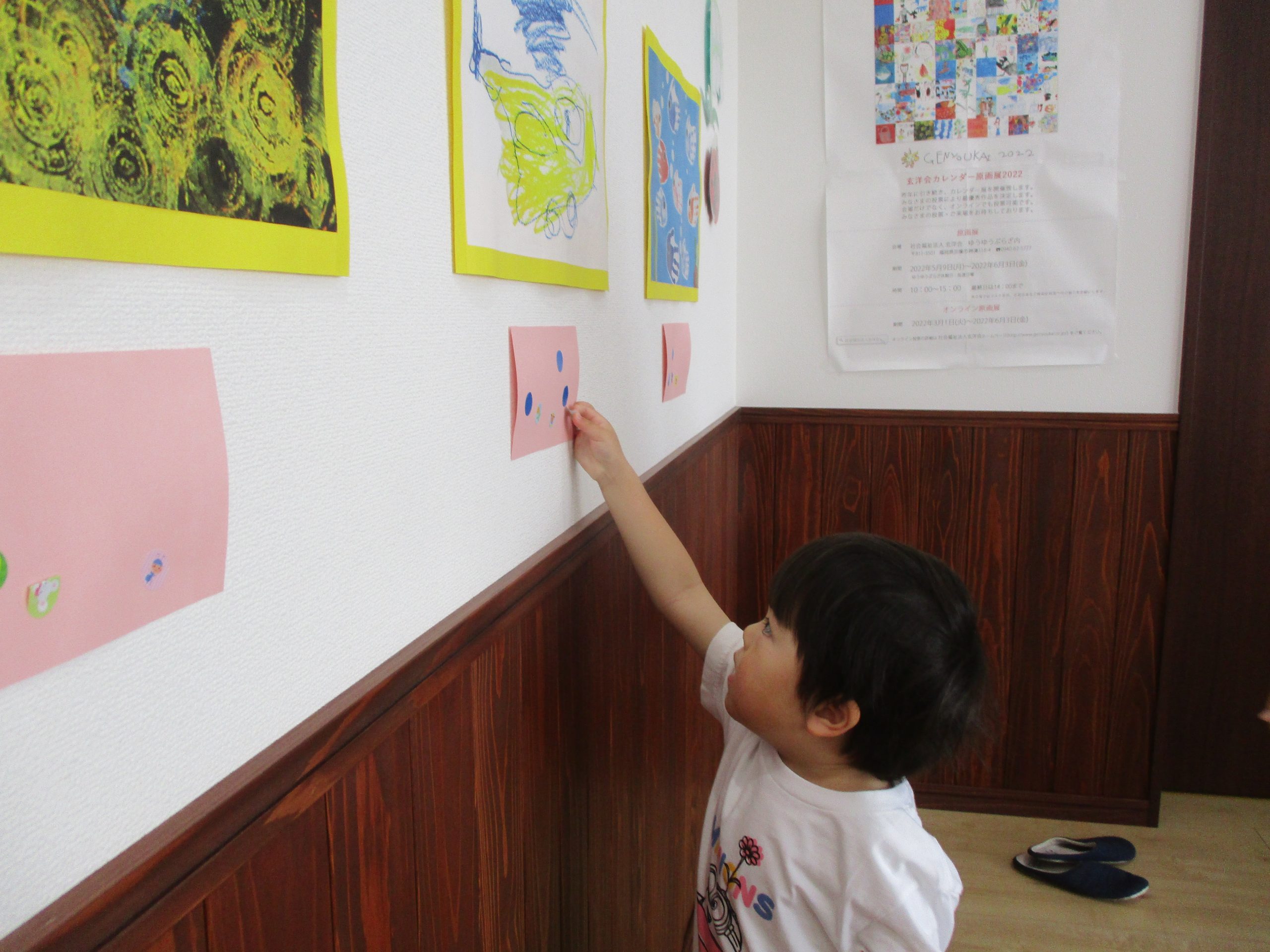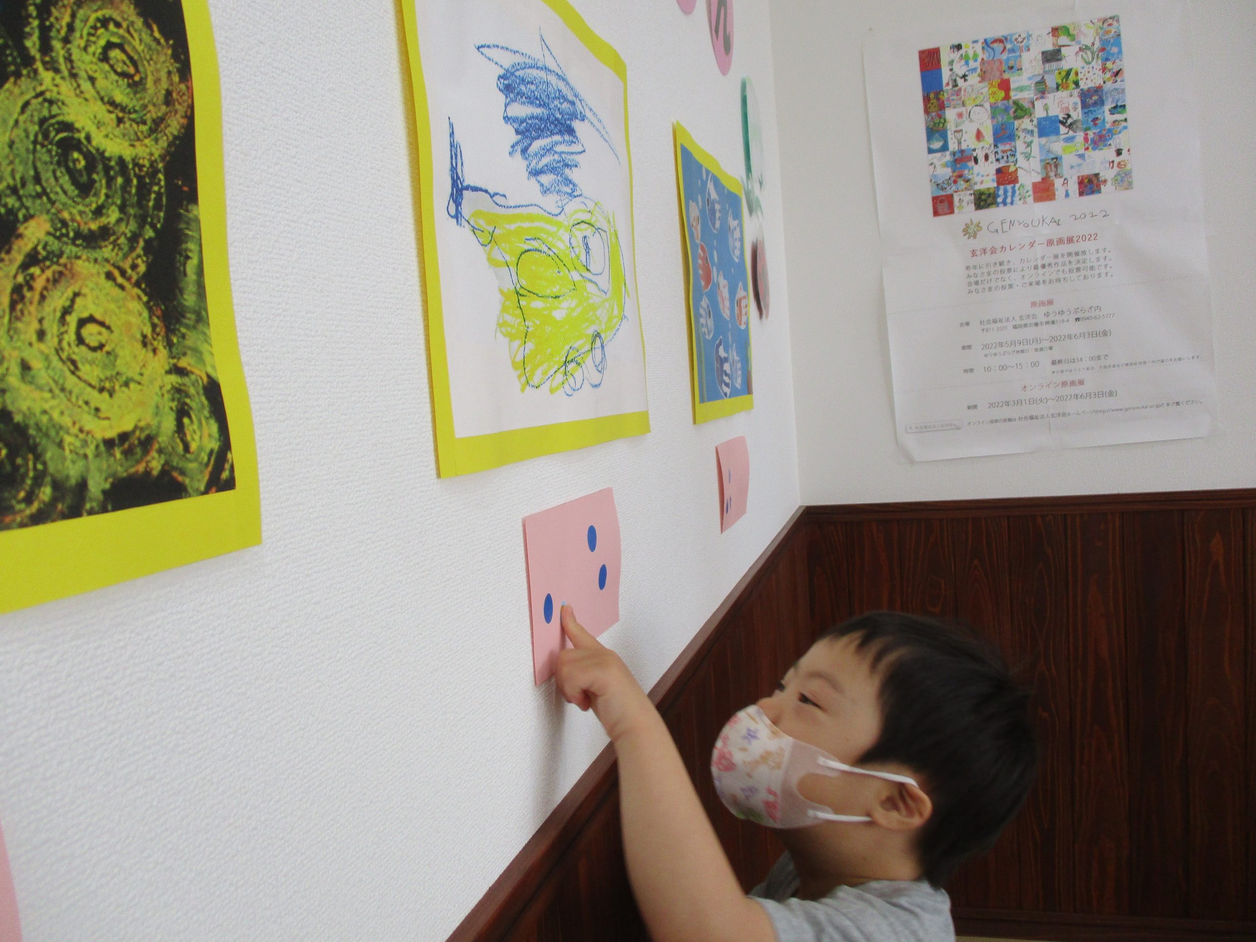各々に好きな絵を選び、上手に投票のシールを貼ることが出来ていました!