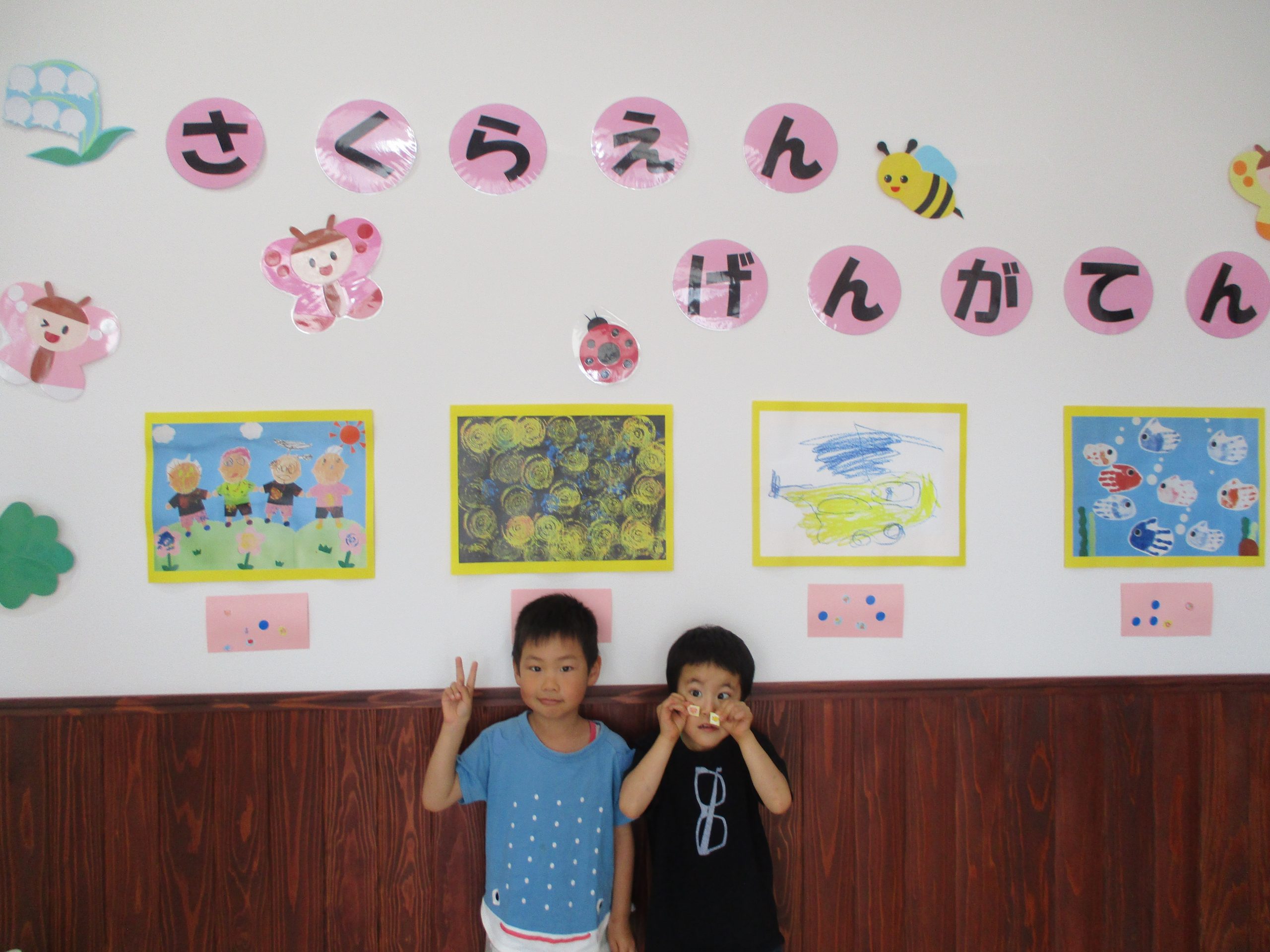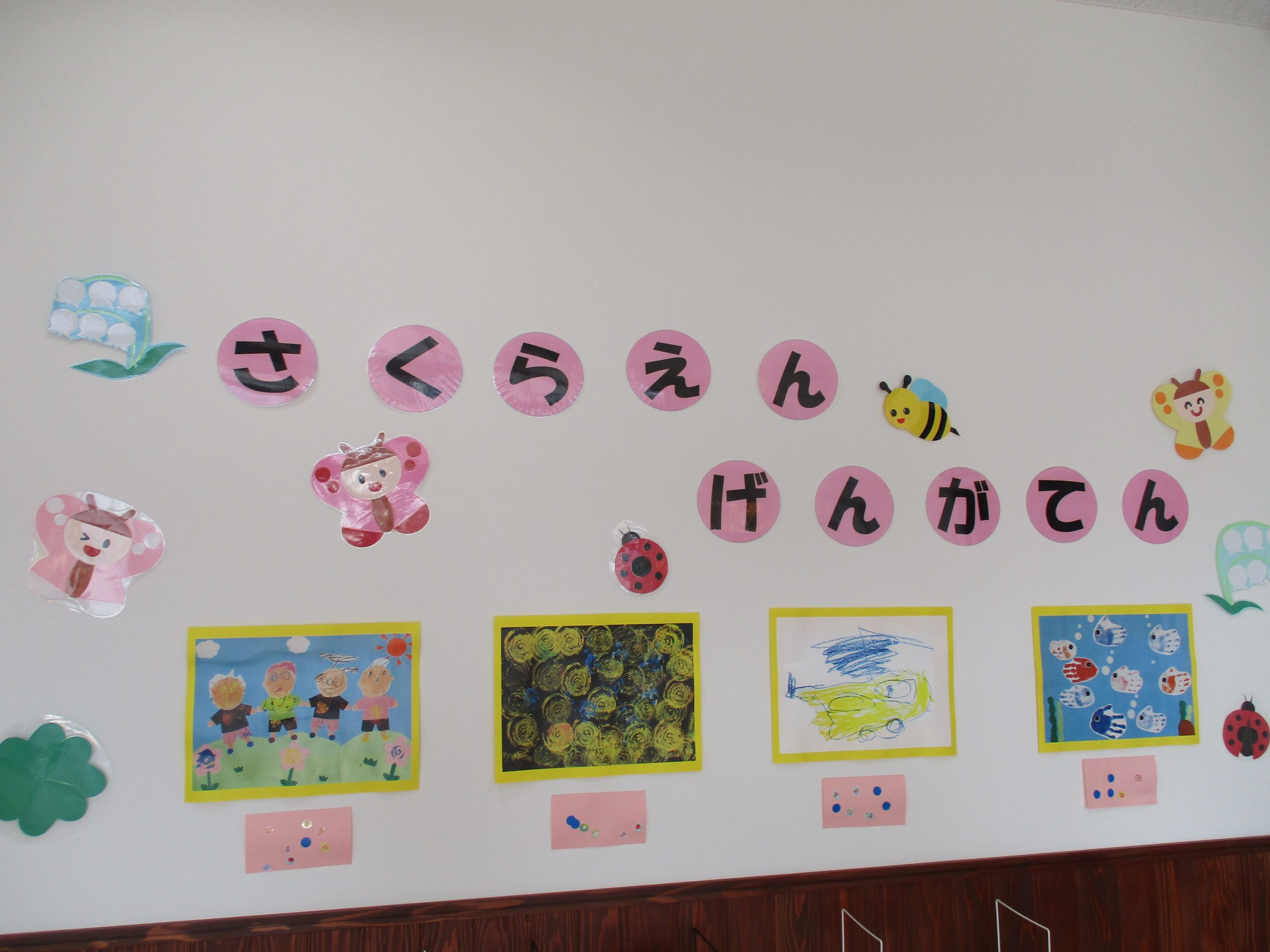 さくら園では、子どもたちが描いた4つの作品を飾り、