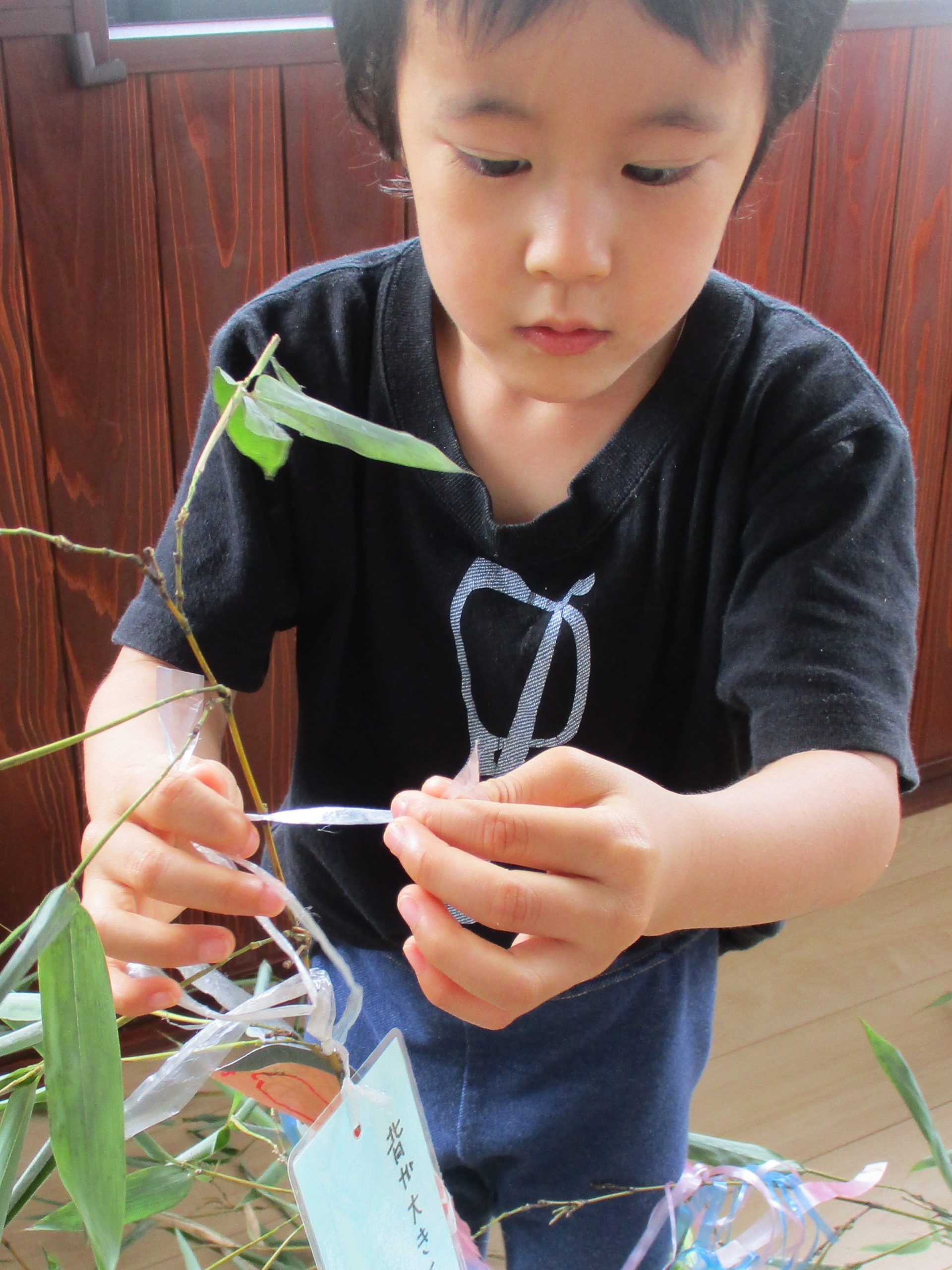 祈りを込めながら笹に短冊の飾り付けを行いました!