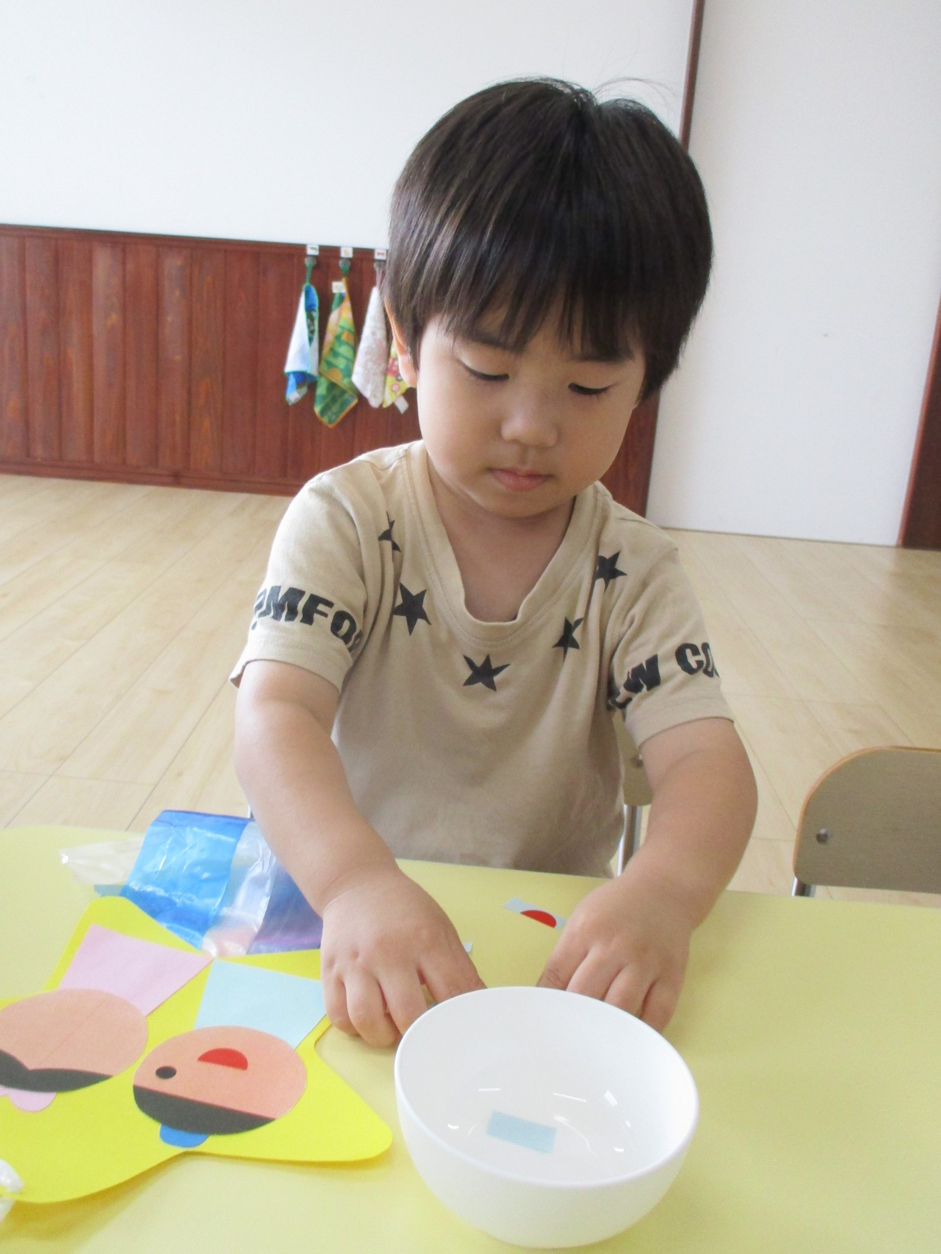 毎日朝の会でシール帳にシールを貼る練習をしているため、