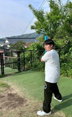自由時間に中庭で野球