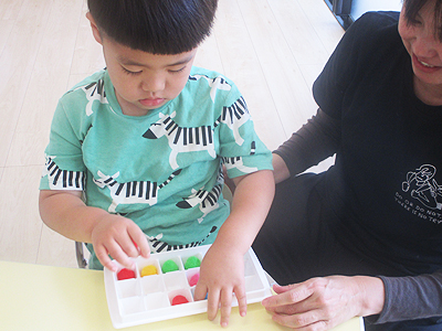発達段階に応じた内容の個別課題を提供し、1対1での療育を通して生活面、学習面でのスキルアップを目指しています。