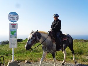 島に着いてからは「カナディアンキャンプ大島牧場」へ向かい、馬とのふれあい体験や引き馬体験をさせていただきました。