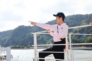 海の上から見える景色に「きれい!」と声が上がり、みんな笑顔でのスタートとなりました。