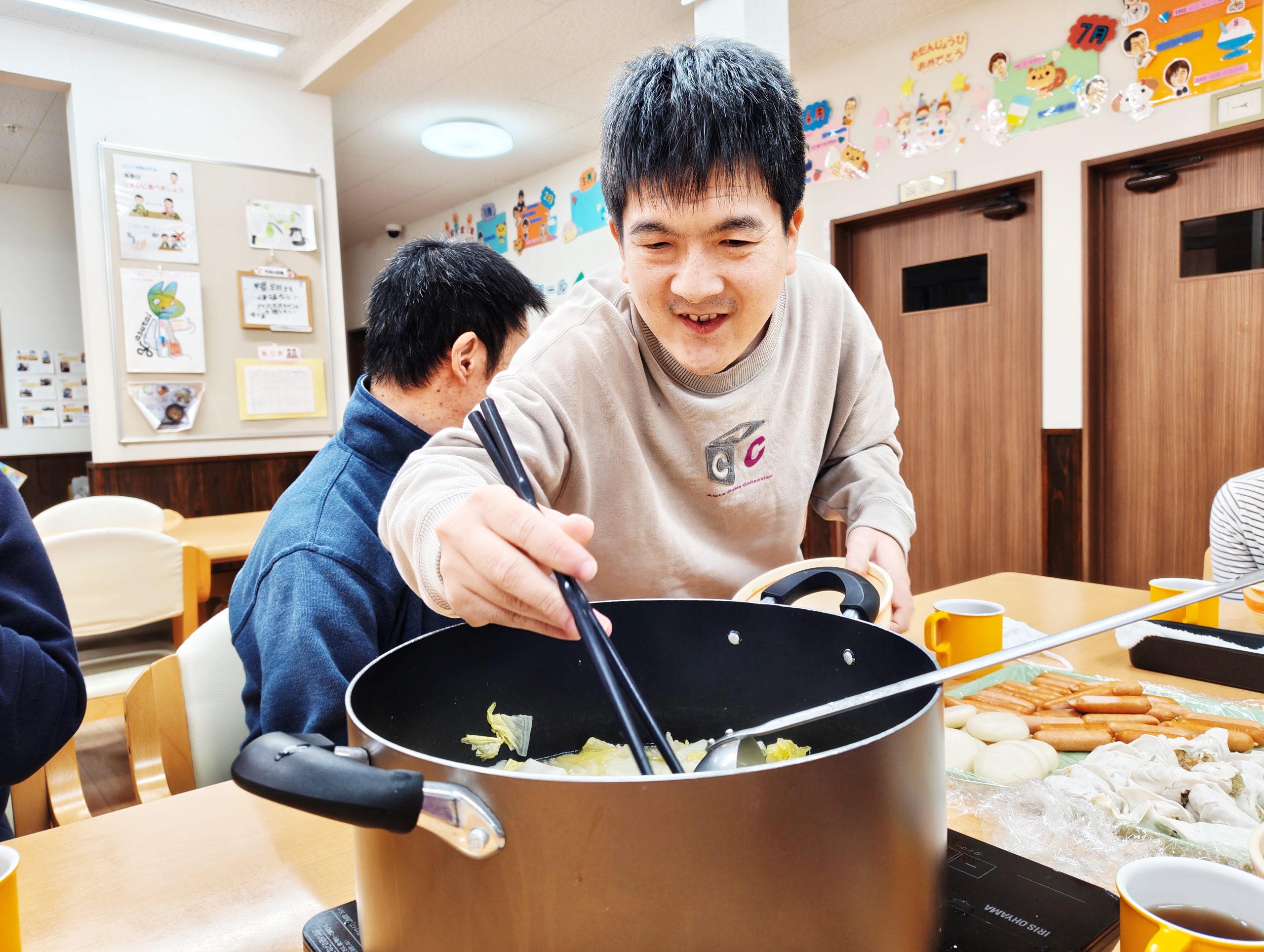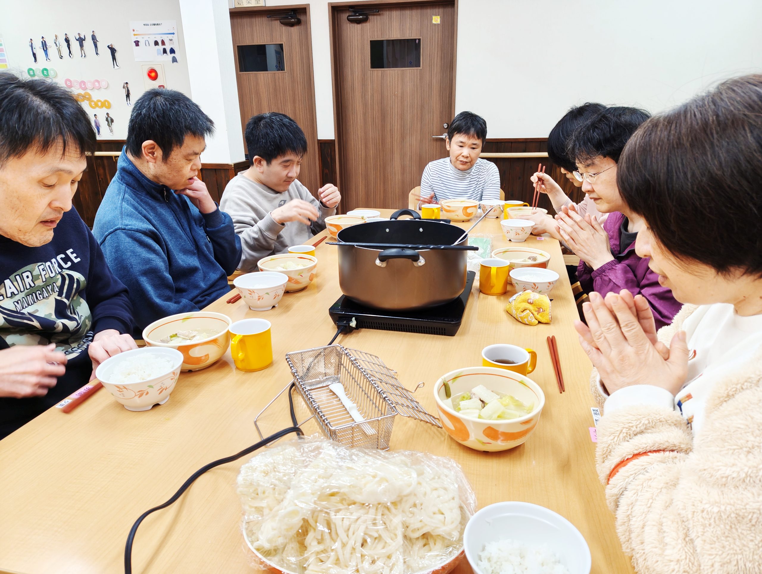 いつもの給食では出来ない「一つの鍋を囲む」という体験。