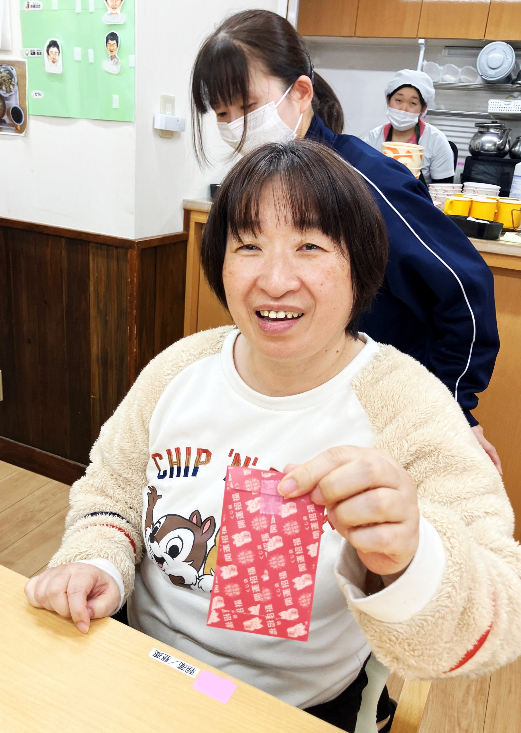 みんなの楽しみにしているお年玉をもらい、中身のお菓子をみんなに見せあって、笑顔いっぱい✨
