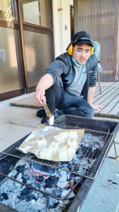 午後には残り火でお餅を焼いて食べました。
