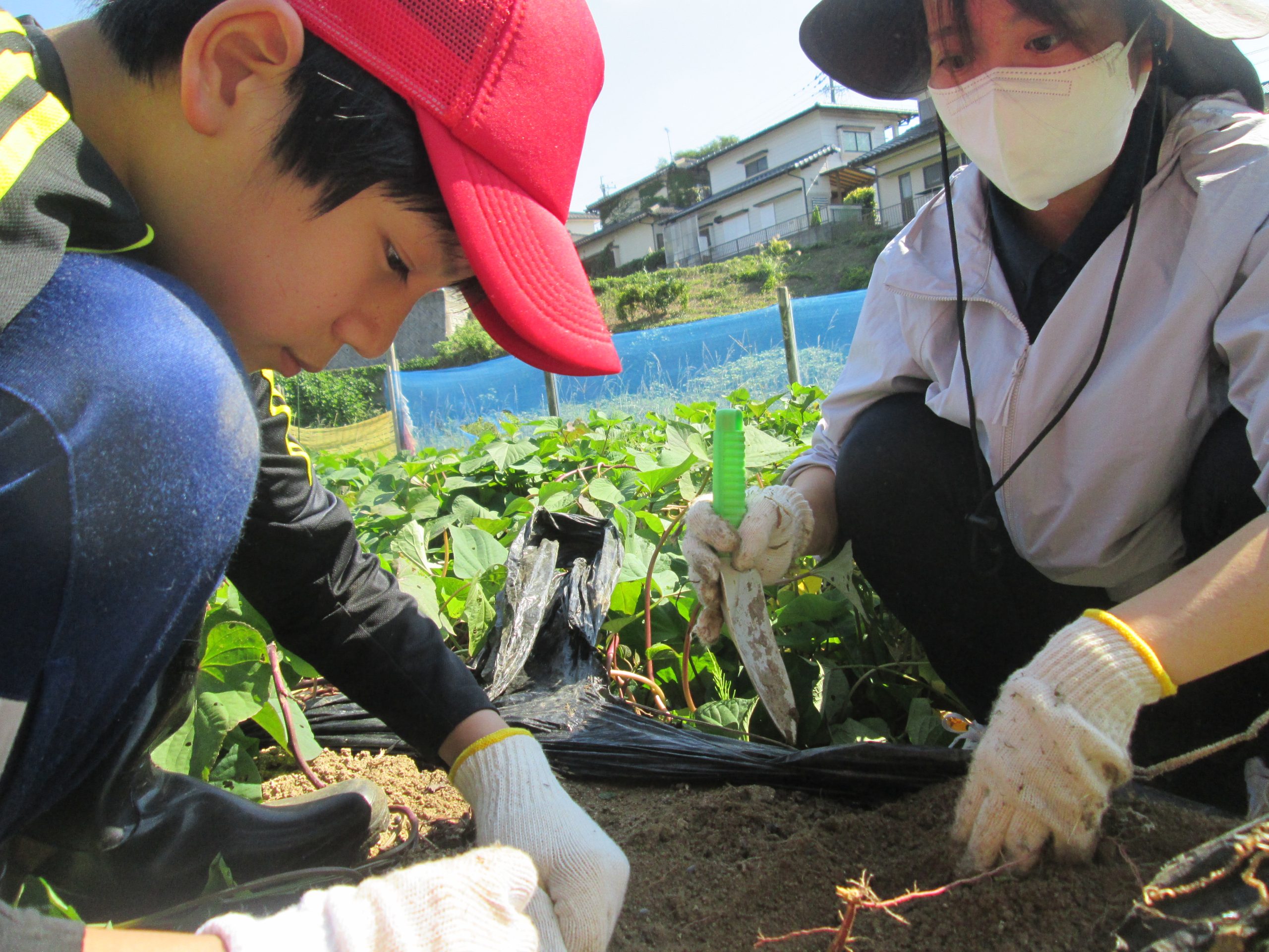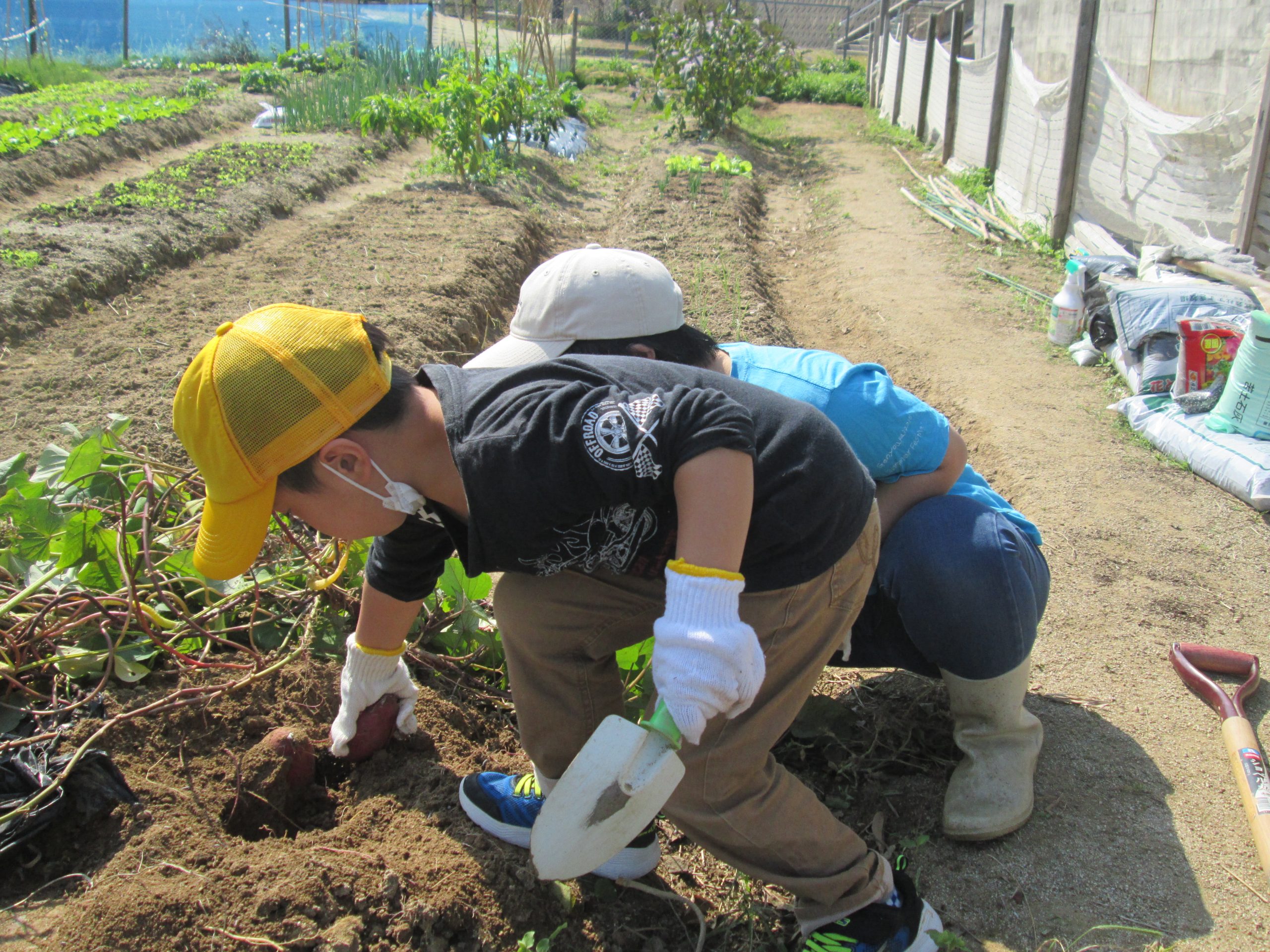 みんなで「よいしょ、よいしょ」と言いながらスコップで掘ると、