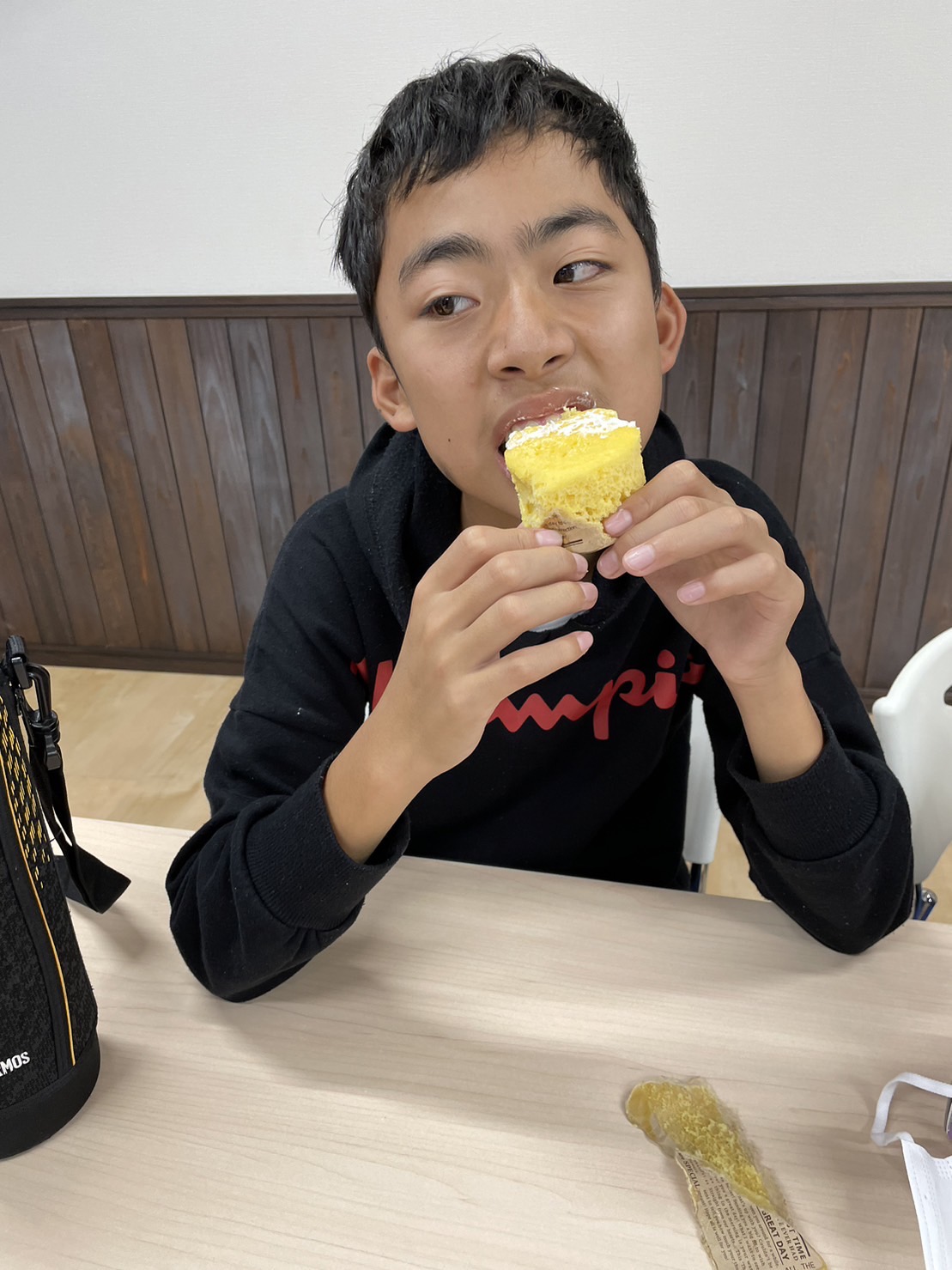 ここでも職員の説明をきちんと聞いて美味しい蒸しパンを作り上げることができました。