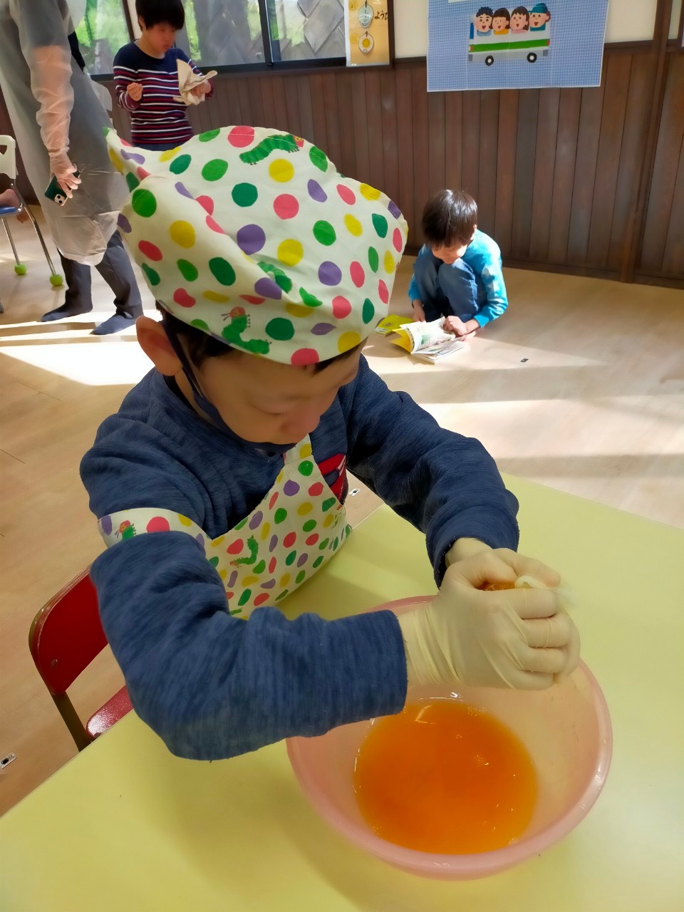 子どもたちが自分で説明書を読みながら容器から作りました!