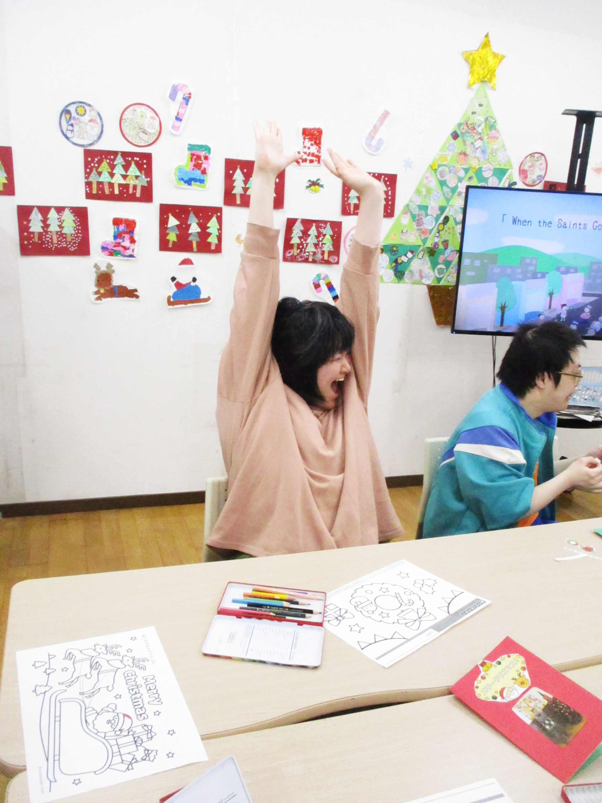 「ゴーゴーゴー」では利用者全員が大きな声で歌ったことで元気な声がホール中に響き渡りました。