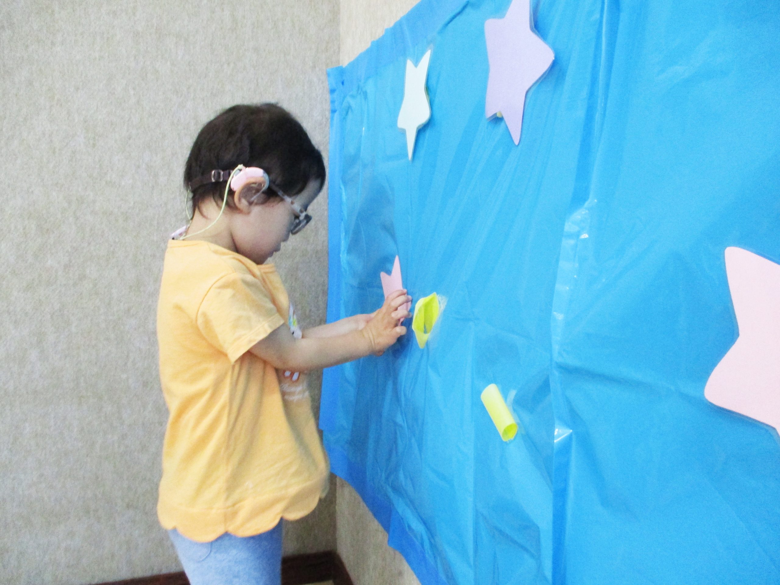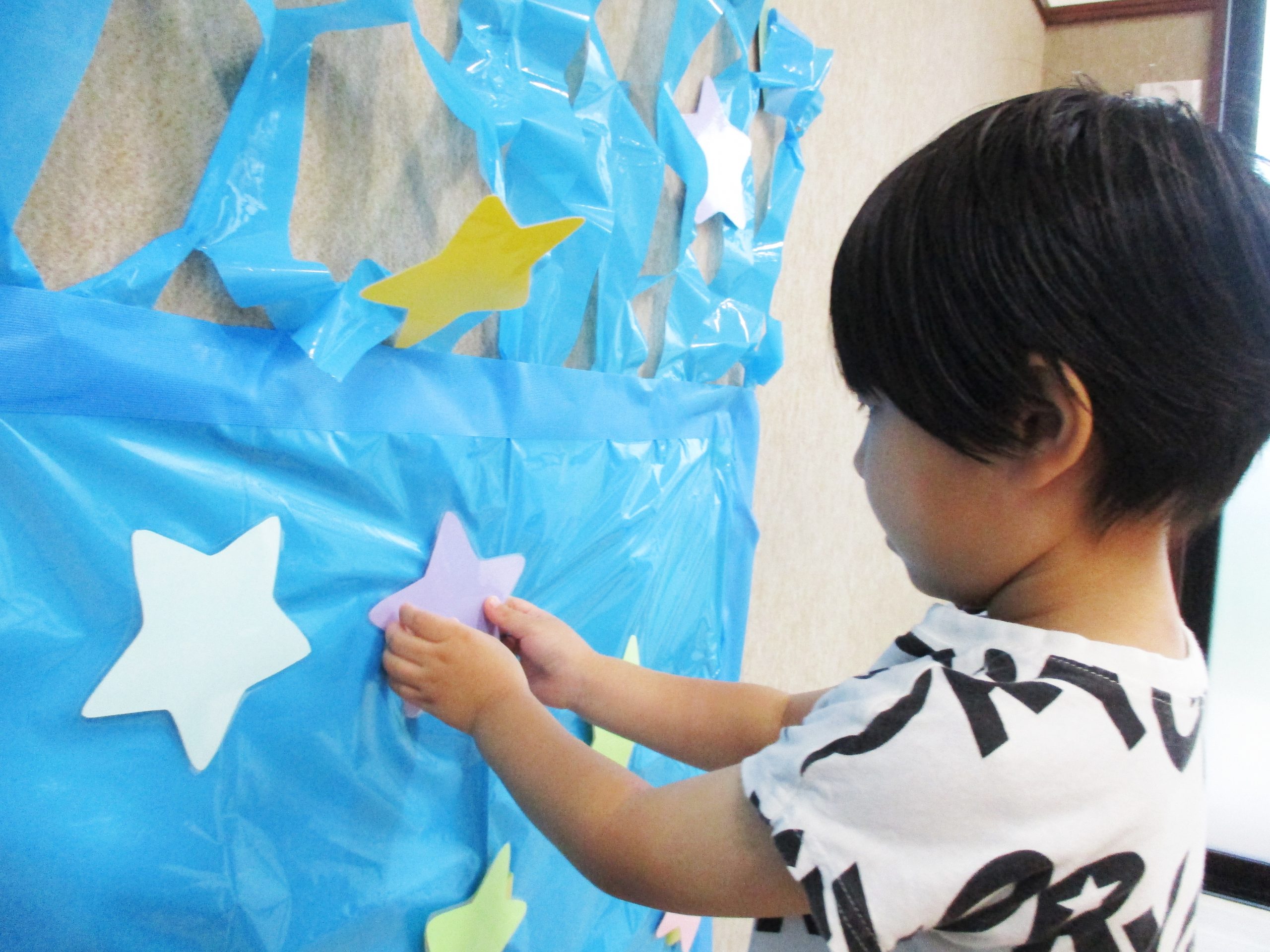 好きな色の星を選んで、天の川や夜空に貼るレクリエーションもあったりと、