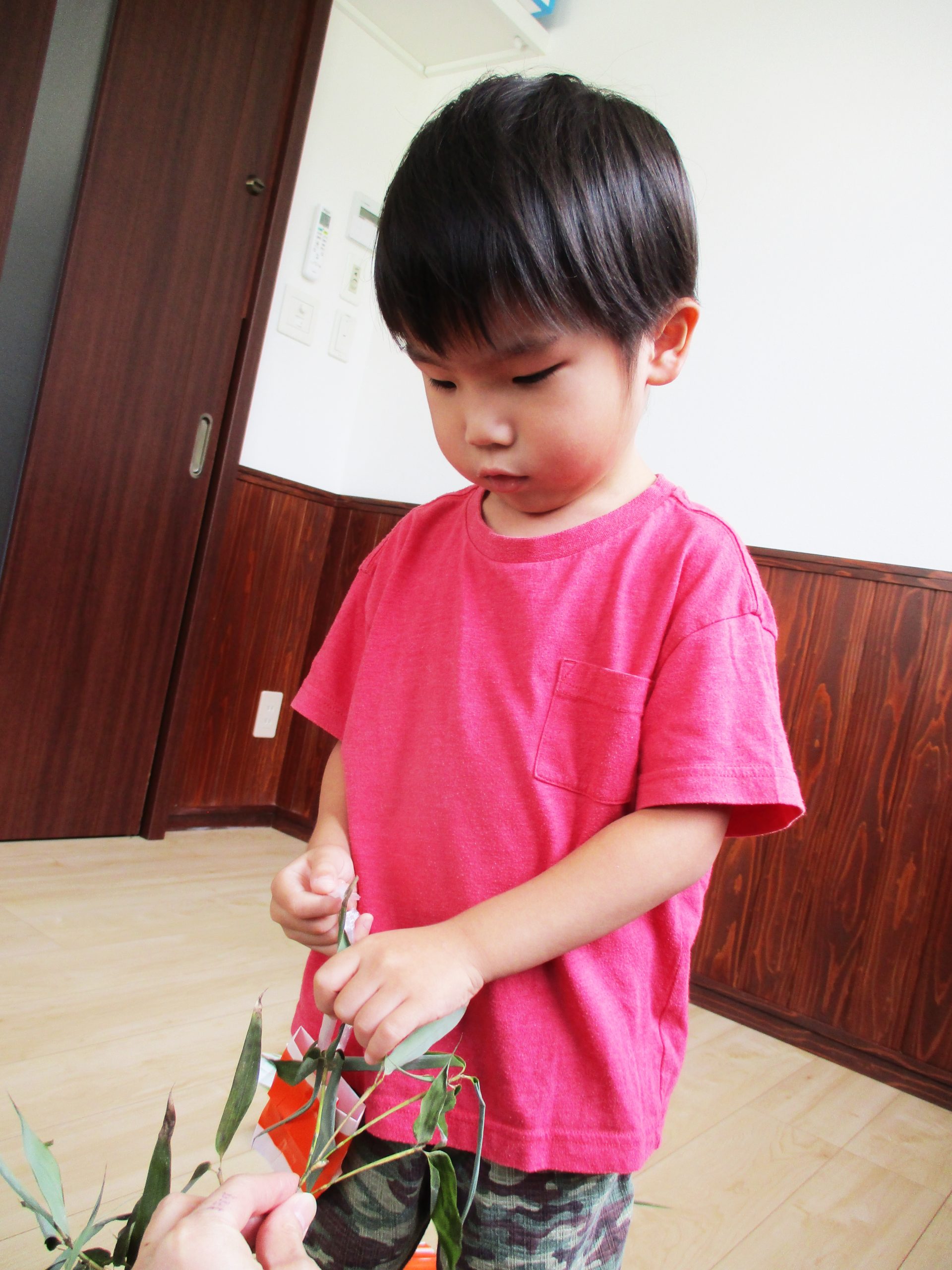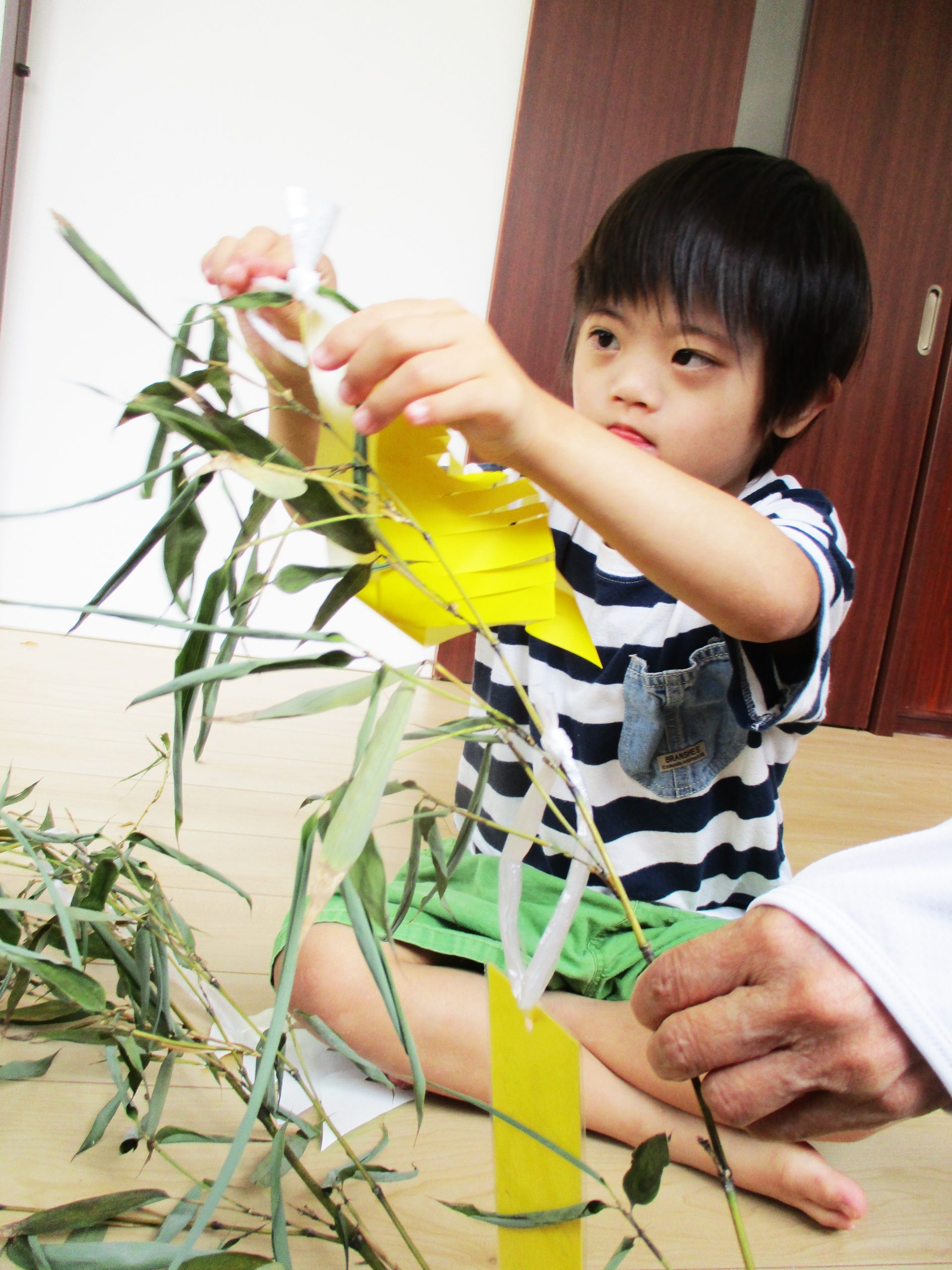 今年も玄関に笹の葉を飾り、活動の一環として『七夕』行事を行いました。