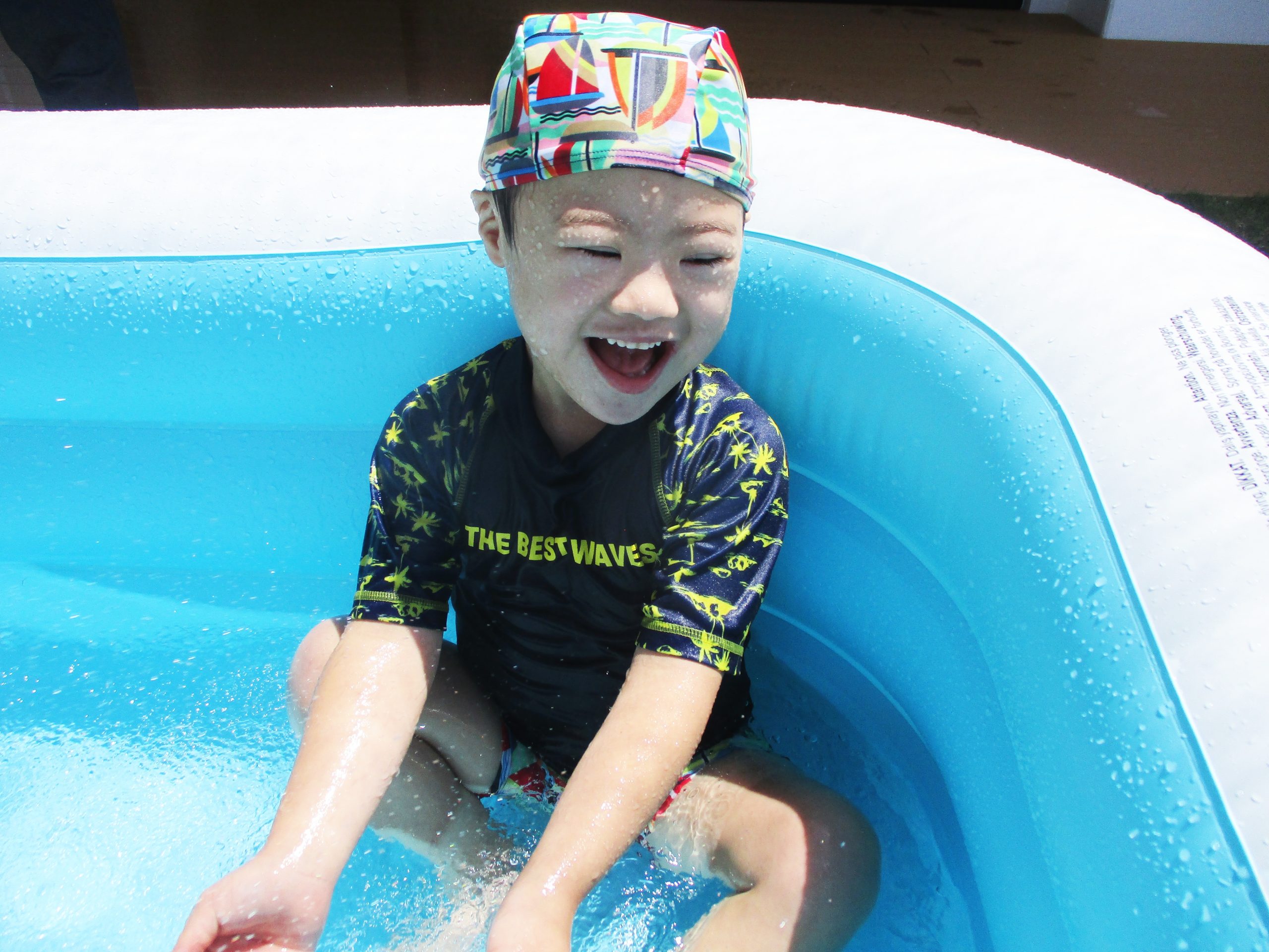 7月前半は雨の日が多く、プールに入ることができず少し残念そうに
