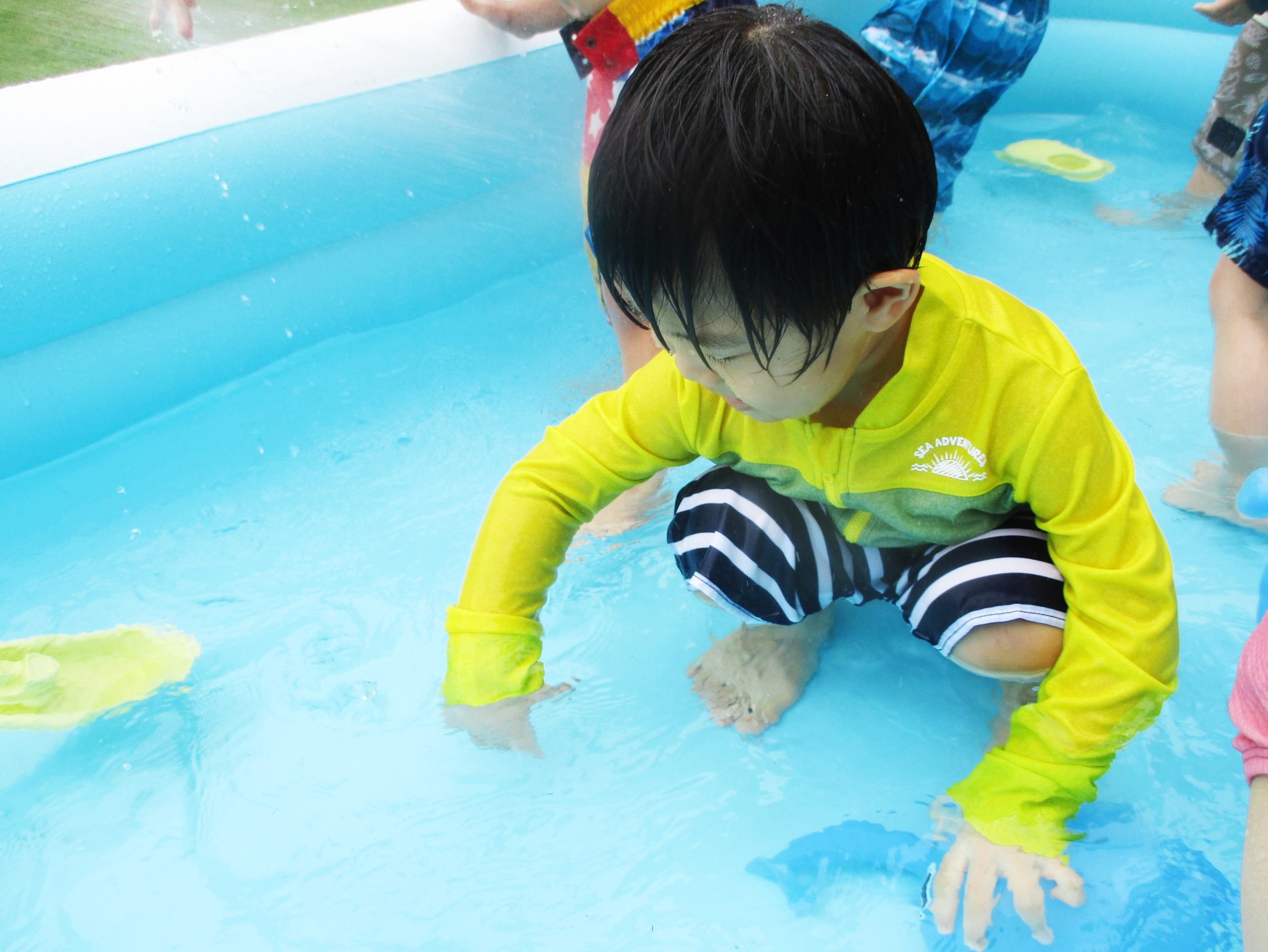 していた子どもたちでしたが、晴れの日は、「今日はプール入れる?」