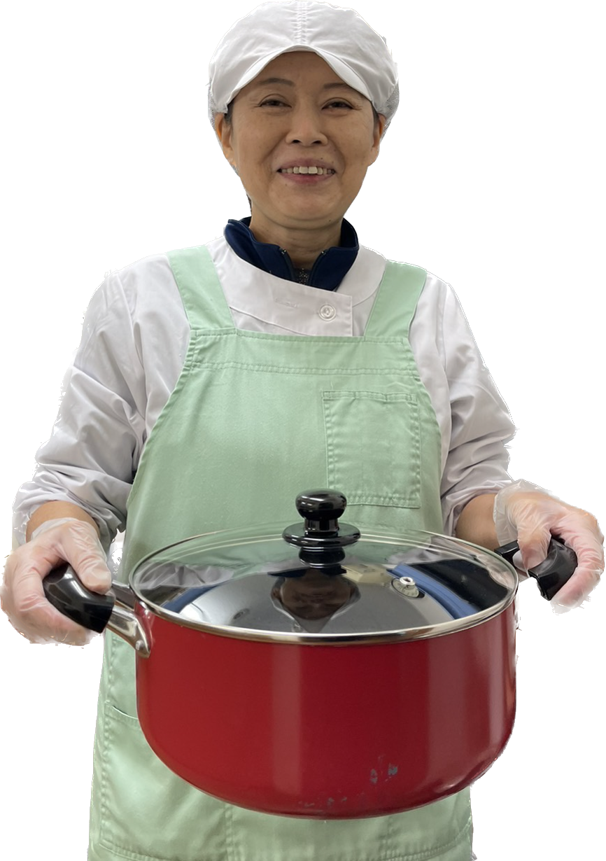 お仕事の内容は、施設に入所している利用者さんや職員の食事を作る調理業務です。