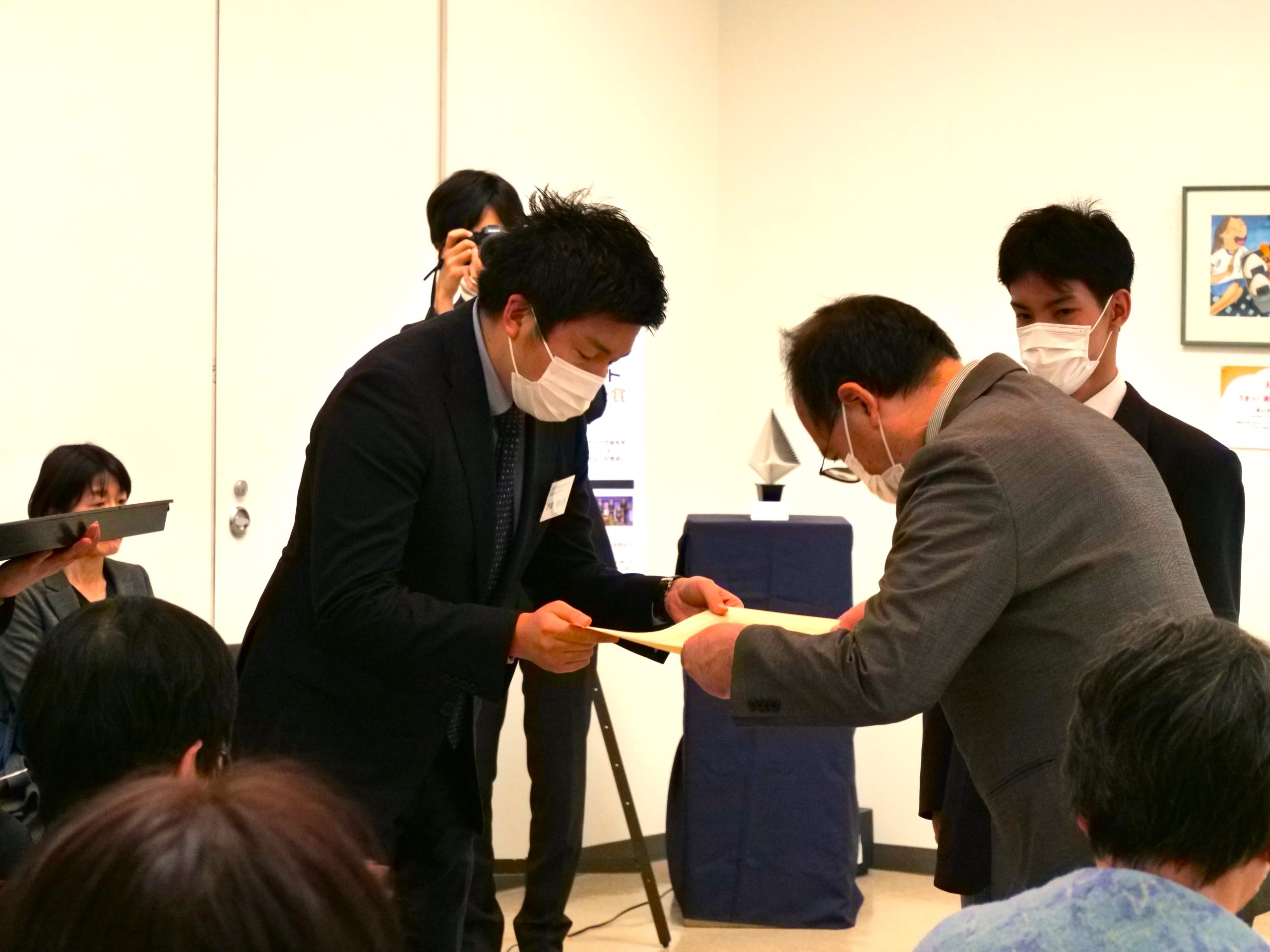 表彰式での宗金さん、最初は緊張した様子でしたが、いざ授与の場面になると
