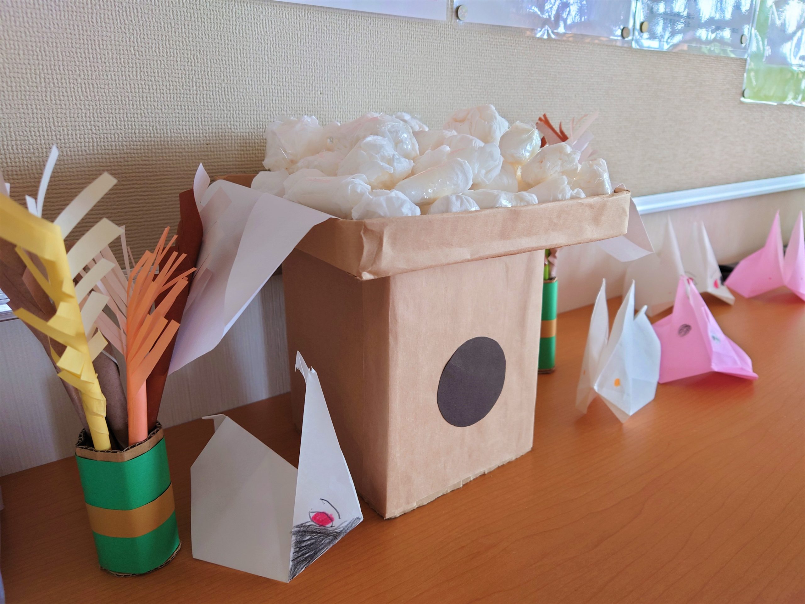ピンクや白の画用紙を桜の形に切り取ったものや、