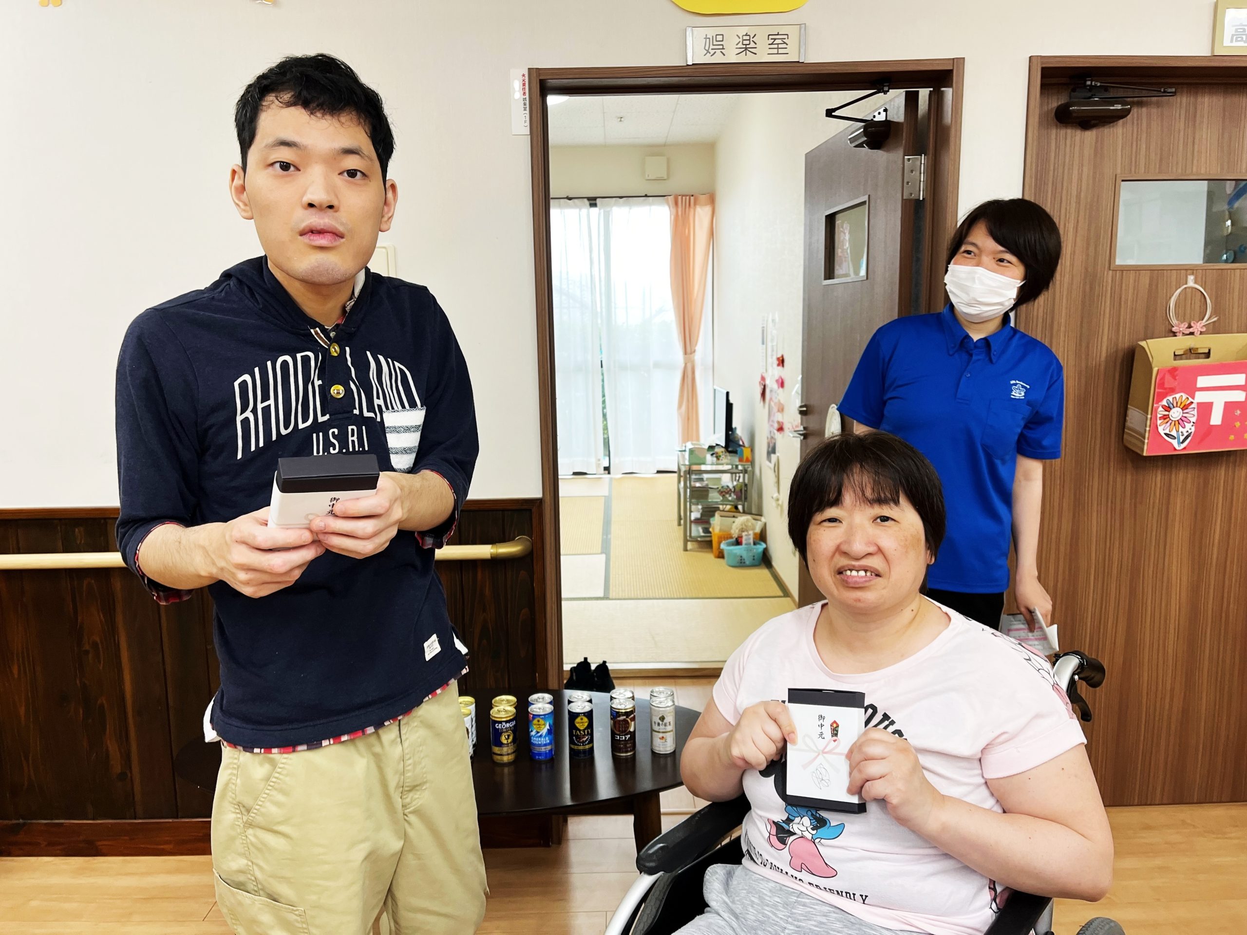 安ら居の利用者がお昼過ぎに到着し、まずはみんなで写真撮影を行いました。