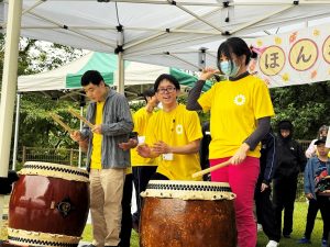 みんな楽しそうに笑顔で太鼓をたたくことができました。