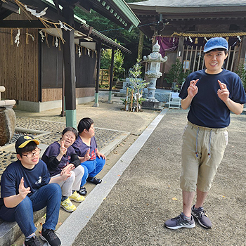 天気の良い週末は散歩がてら、近くの自動販売機までジュースを買いに出かけ、すれ違う地域の方と挨拶を交わしつつ、近くの神社で涼みながら喉を潤したり、芝生やテラスでお弁当を食べたり、スーパーやファミリーレストランに買い物や喫茶に出かけたりと地域での生活を楽しんでいます。