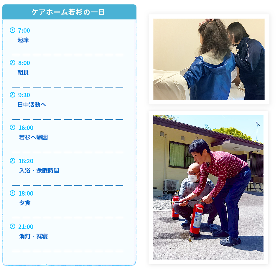 ケアホーム若杉は平成24年4月に自然豊かな篠栗町に法人最初のグループホームとして開所し、現在、男女計20名の利用者が入居しています。朝起きるのが苦手な利用者等、生活ペースは様々で、余暇の過ごし方、嗜好も人それぞれです。職員は利用者が安心して快適かつ、自立した生活を営むことができるよう、日々の生活の中から得意なこと、苦手なこと、嗜好、行動パターン等を把握し、個人の生活ペースを重視しながら支援を行っています。日々の写真や動画、お知らせ等もLINEを活用し、近況報告を行っています。