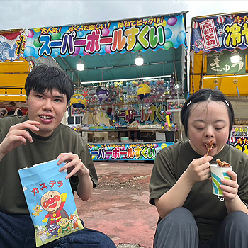 先日はケーキバイキングを行い、好評でした。饅頭が食べたい、アイスクリームが食べたい等、利用者からのリクエストもあります。その他、非日常を楽しむ、利用者間や利用者と職員の親睦を深めることを目的とし、年に2~3回、マイクロバスで日帰りの小旅行に出掛ける「おでかけ」も人気です。隣県の水族館や宇宙科学館、県内の動物園や工場見学、夜のイルミネーション見学等、色々な場所に出かけました。